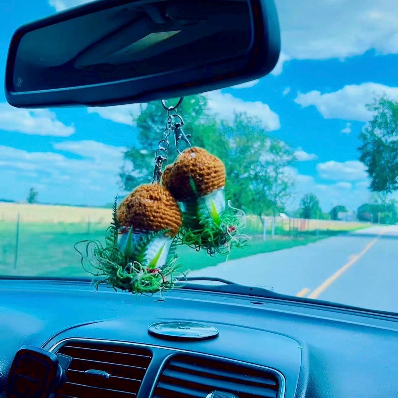 Add a touch of whimsy to car with this adorable small crochet brown and white mushroom car mirror pendant, keychain or backpack charm! Handcrafted with love, this charming accessory features vibrant colors and intricate detailing, making it a perfect gift for nature lovers and crochet enthusiasts alike. Lightweight and durable, it's not just a stylish addition to your bag or keys, but also a delightful conversation starter. Each keychain is unique, ensuring that you carry a one-of-a-kind piece wherever you go!