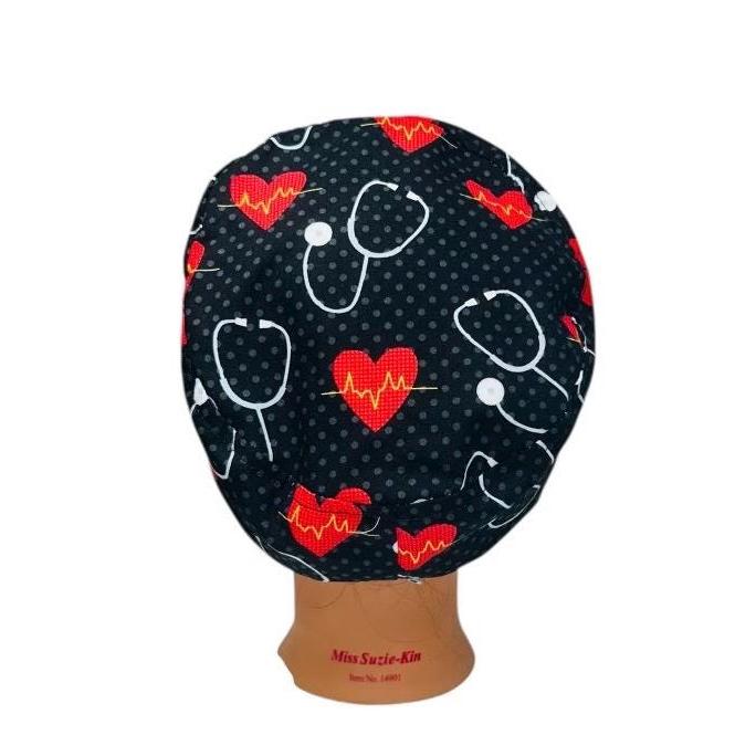 Surgical Scrub Cap Nurse OR Hat Hearts and Stethoscopes Print