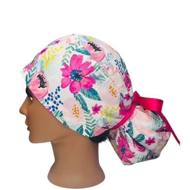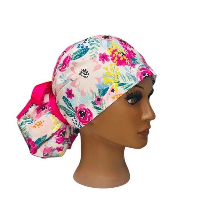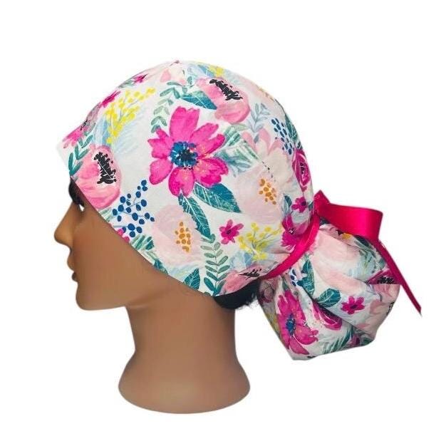 Surgical Ponytail Scrub Cap Floral Nurse Uniform Hat for Operating Room